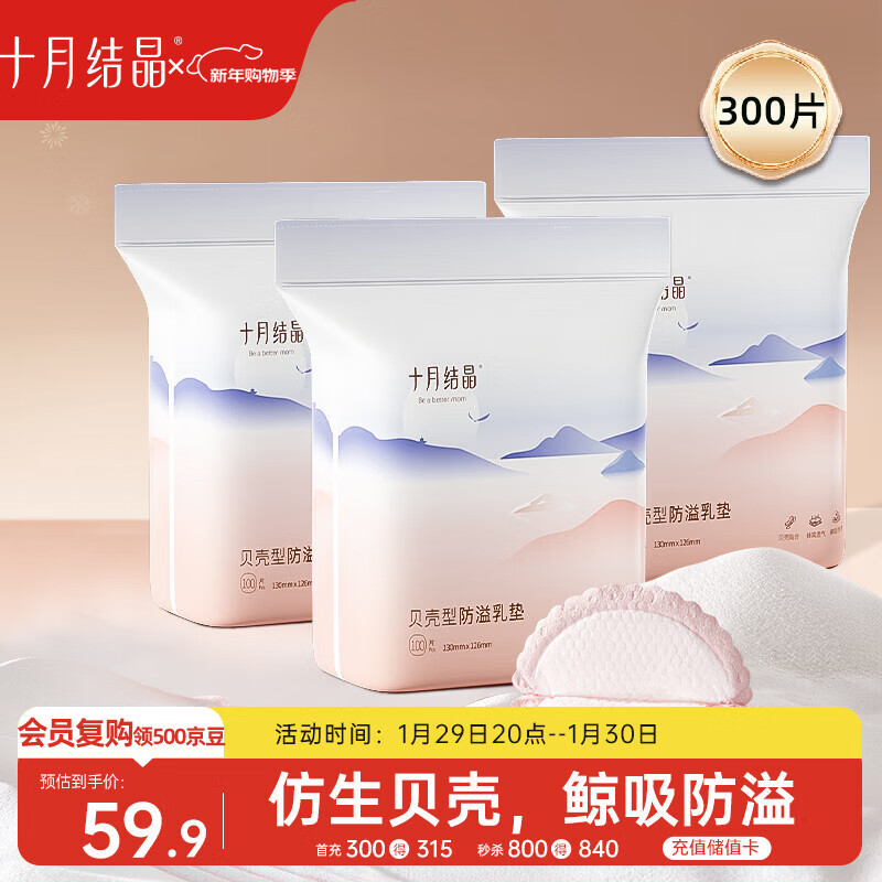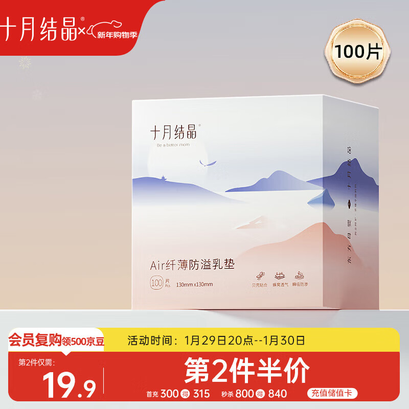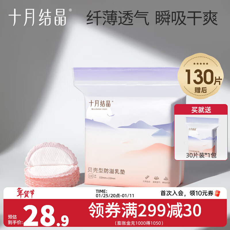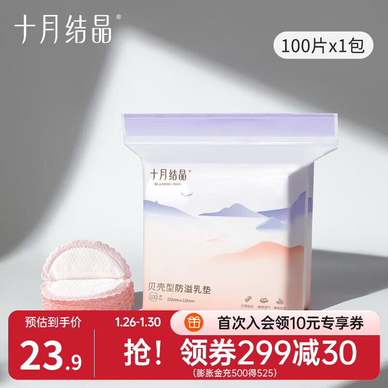 十月结晶 防溢乳垫秋冬一次性母乳垫孕妇乳贴母乳防漏贴薄款升级款 100片装 贝壳款