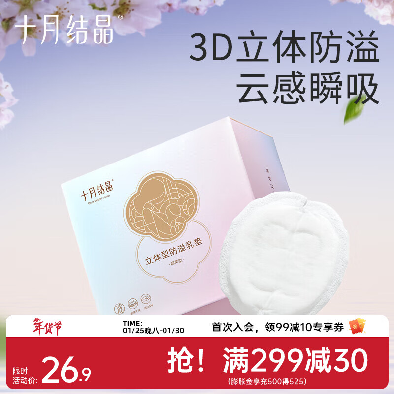 十月结晶防溢乳垫哺乳期超薄3D立体透气产妇一次性防漏奶贴30片/包