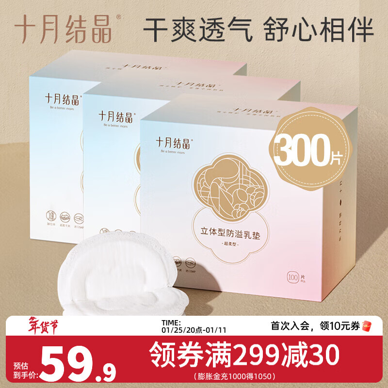 十月结晶防溢乳垫一次性溢乳垫超薄哺乳期母婴防漏奶垫乳贴 300片装 【经典立体型】19.9/盒