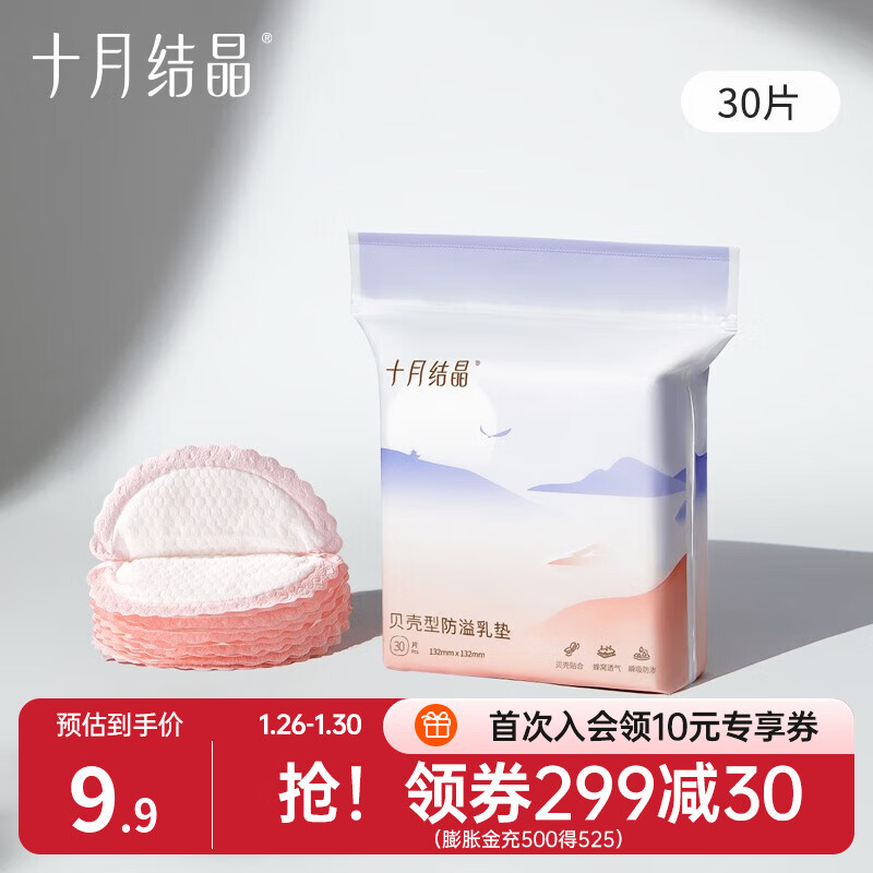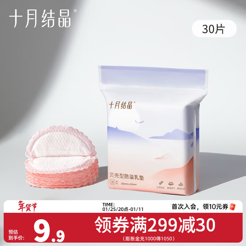 十月结晶 防溢乳垫秋冬一次性母乳垫孕妇乳贴母乳防漏贴薄款升级款 30片装 贝壳款