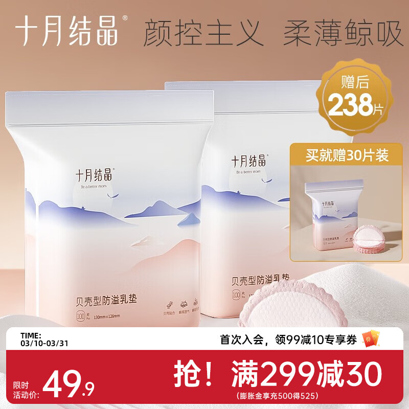 十月结晶 防溢乳垫春夏一次性母乳垫孕妇乳贴母乳防漏贴薄款升级款 100片装 贝壳款