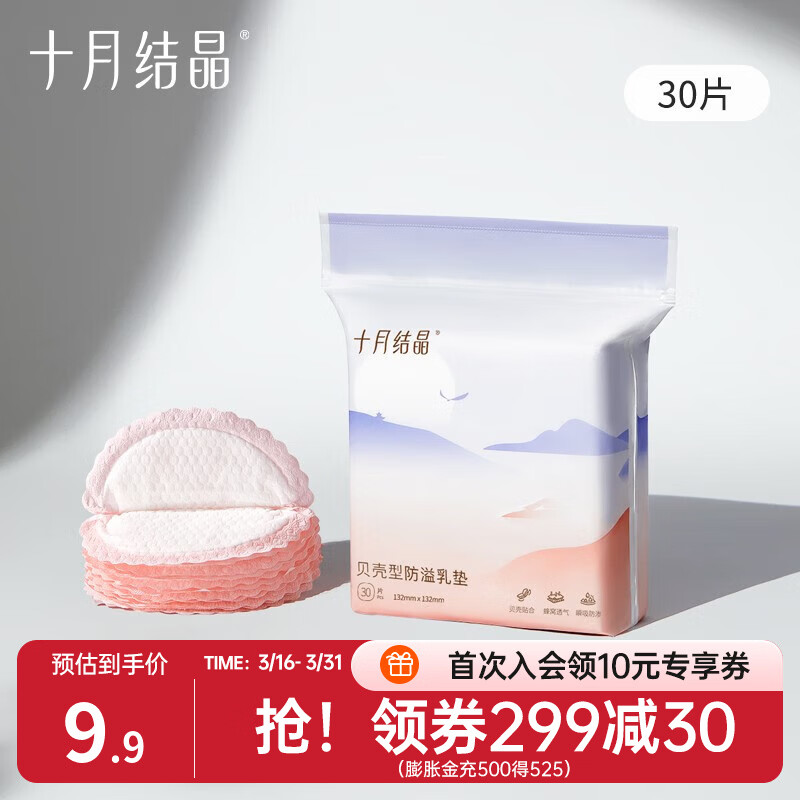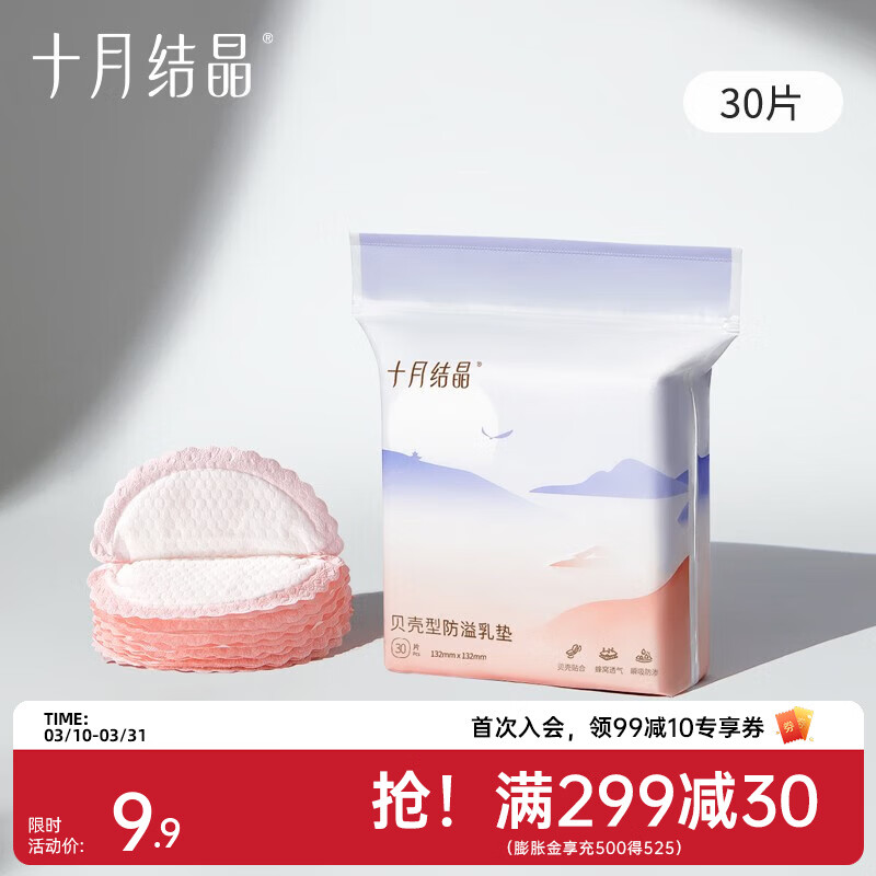十月结晶 防溢乳垫春夏一次性母乳垫孕妇乳贴母乳防漏贴薄款升级款 30片装 贝壳款