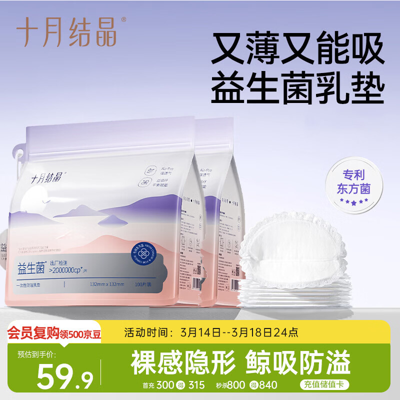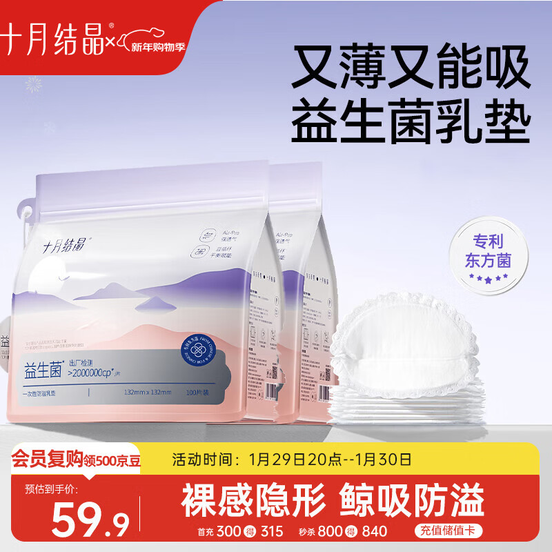 十月结晶防溢乳垫超柔一次性超薄透气哺乳期防漏乳贴【益生菌款】100片
