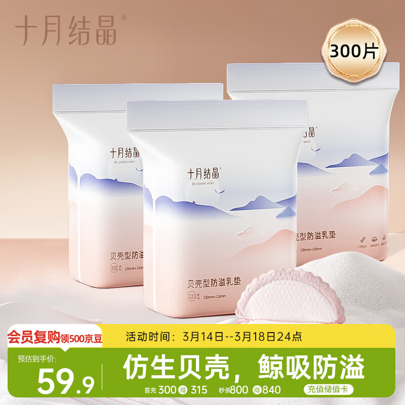 十月结晶防溢乳垫一次性乳贴防漏3D立体哺乳期乳垫贝壳款300片