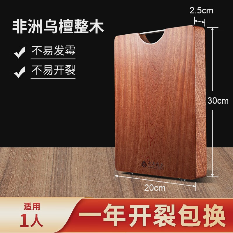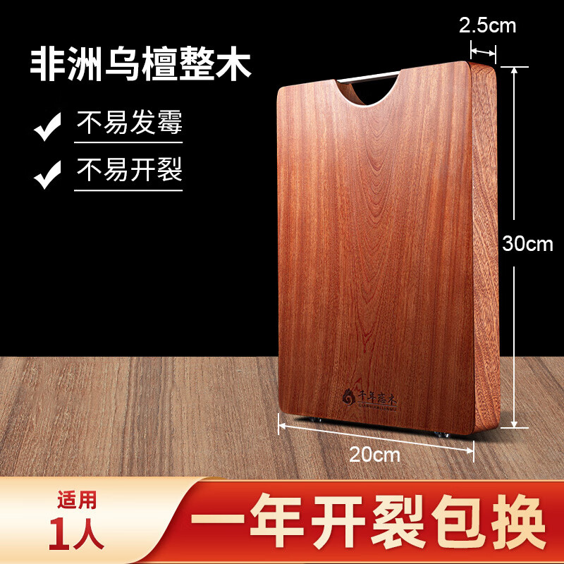 千年恋木乌檀木抗菌砧板家用双面实木切菜板 乌檀木_整木_加厚_30*20*2.5cm