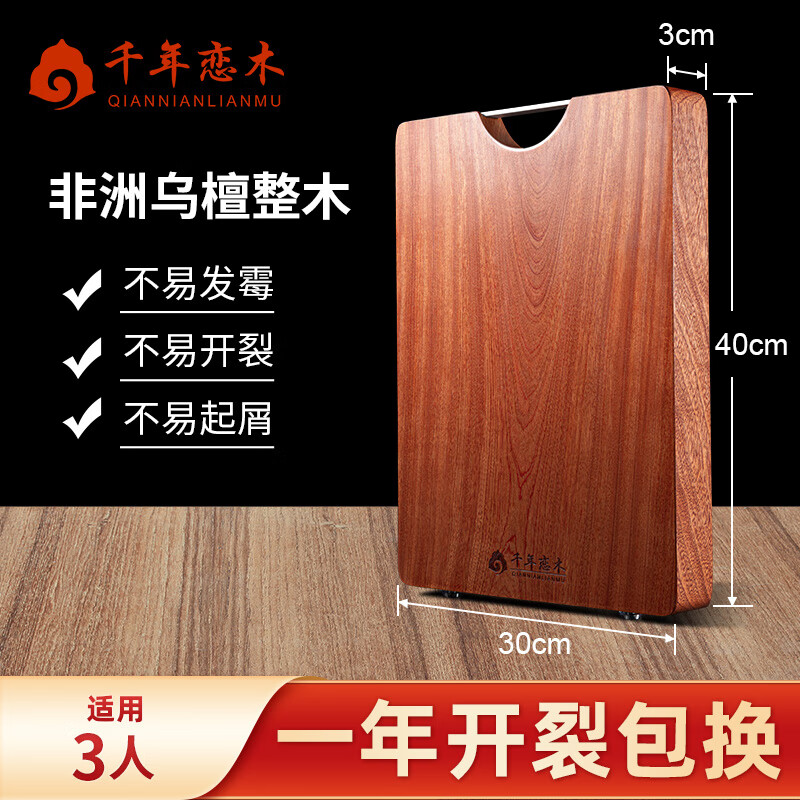 千年恋木乌檀木菜板家用实木质砧板厨房占粘板切菜板防霉防滑果蔬 檀木整木加厚30*20*2点5cm