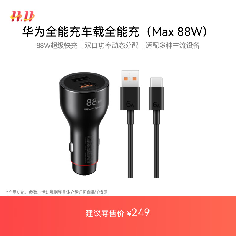 华为(HUAWEI)车载全能充/充电器 88W超级快充适用华为手机Mate XTs/Mate 70 Pro