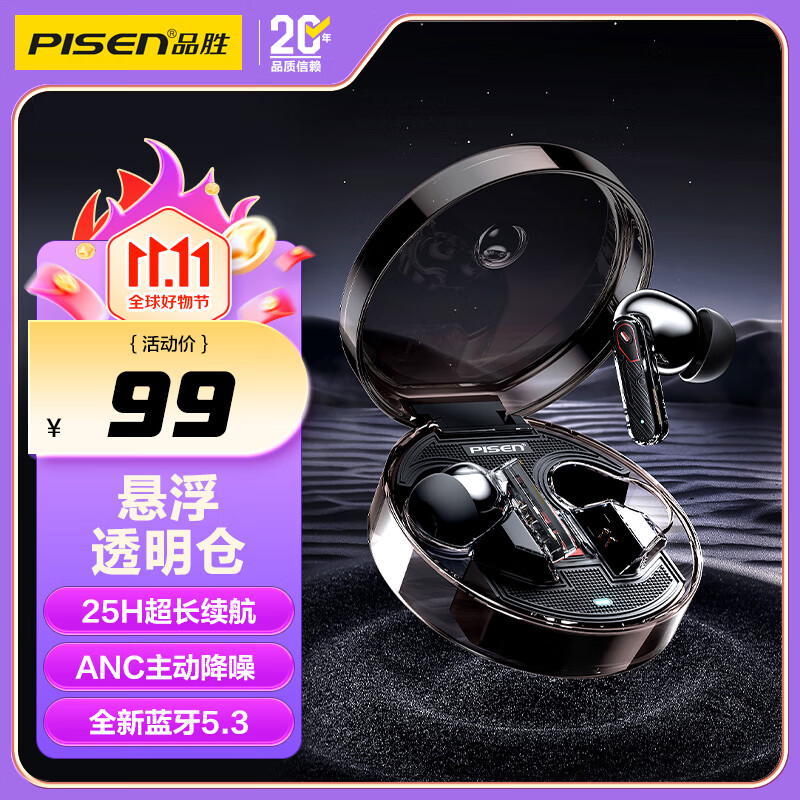 品胜 真无线蓝牙耳机 主动降噪耳机 蓝牙5.3入耳式音乐运动耳机C1低延迟适用苹果17小米华为手机 秋枫褐【主动降噪入耳式 C1】
