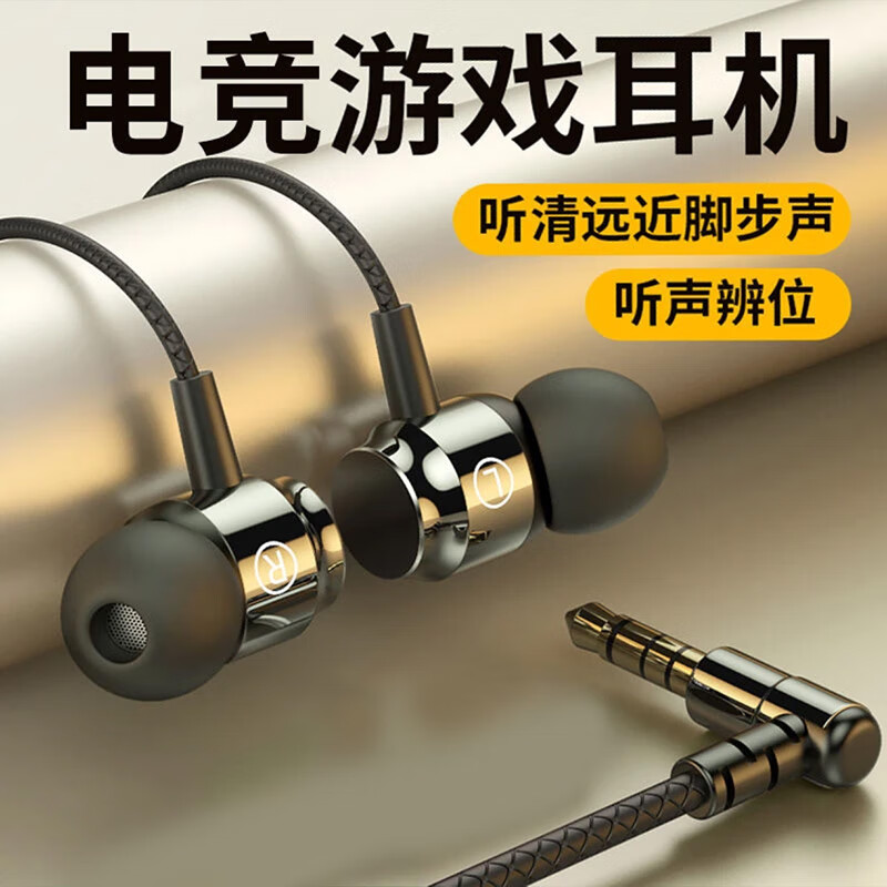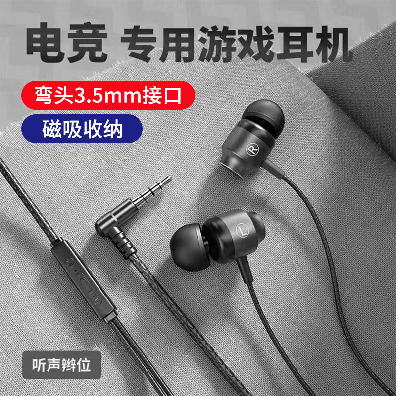 昇亿昊手机耳机有线入耳式3.5mm圆头孔弯头电竞游戏音乐听歌适用华为小米oppo荣耀vivo红米 3.5mm圆插头【线控调音】黑色