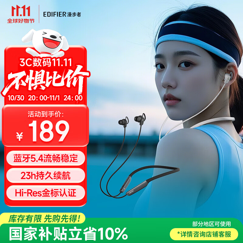 漫步者(EDIFIER)W280NB Pro 颈挂式主动降噪蓝牙耳机 蓝牙5.4 45dB降噪 适用苹果华为小米OPPO手机 典雅黑