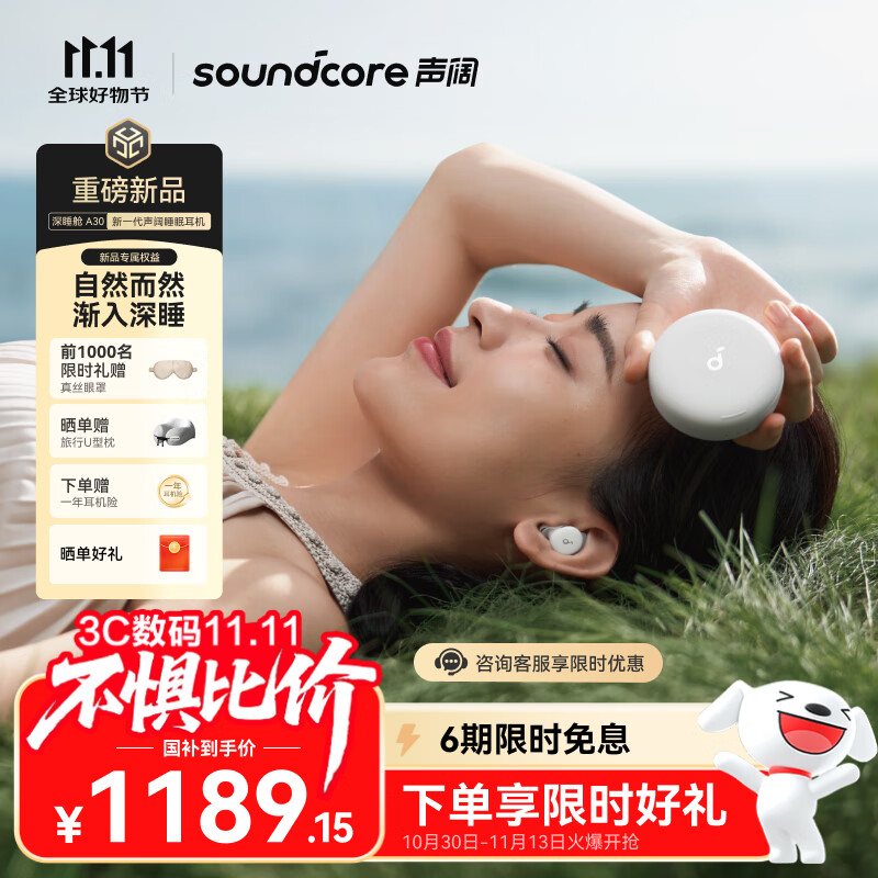 声阔SleepA30睡眠耳机深睡舱蓝牙耳机睡觉不压耳无线降噪隔音耳塞助眠隐形小巧适用苹果华为小米白色