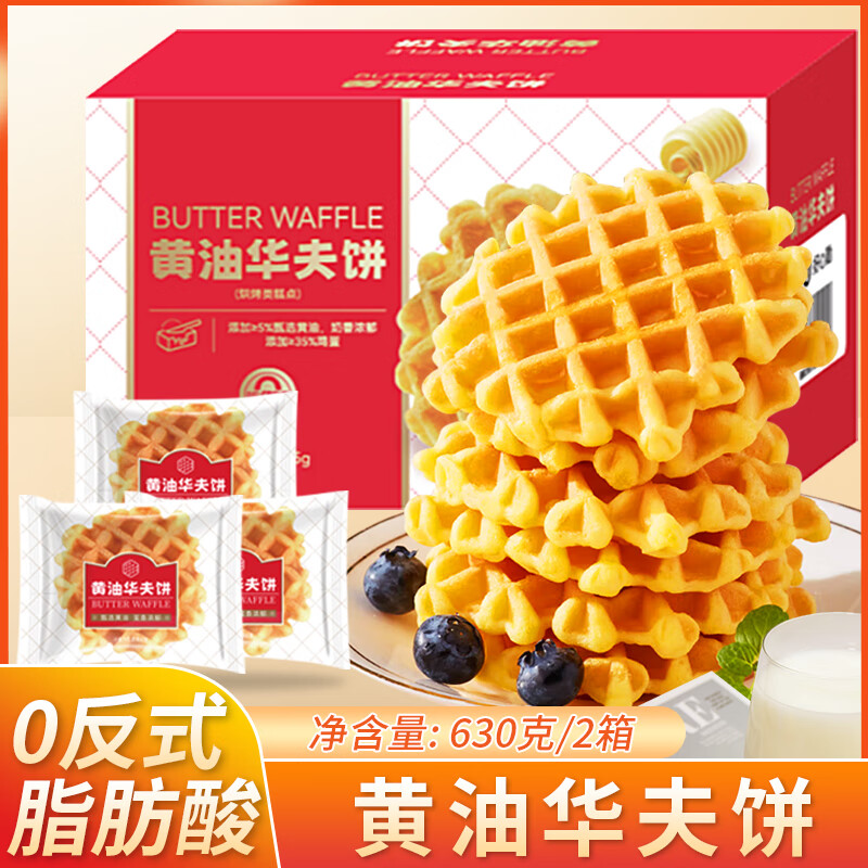 七小七早安奶牛黄油肉松华夫饼蛋糕健康零食面包整箱营养早餐食品 黄油华夫饼(减钠版)*1箱