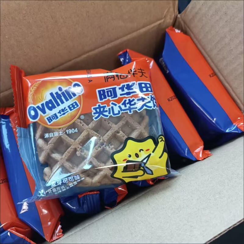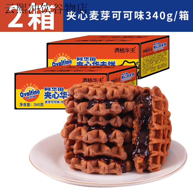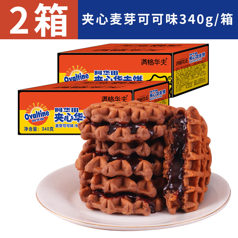 阿华田(Ovaltine)夹心华夫饼340g*2巧克力蛋糕面包早餐网红儿童零食 【含夹心】阿华田华夫饼340g*2箱 340g
