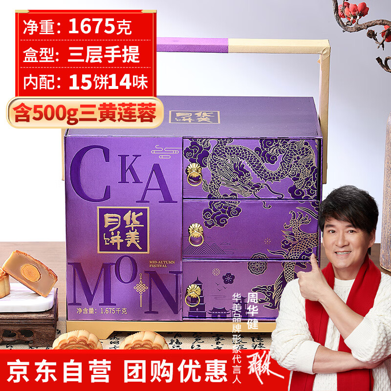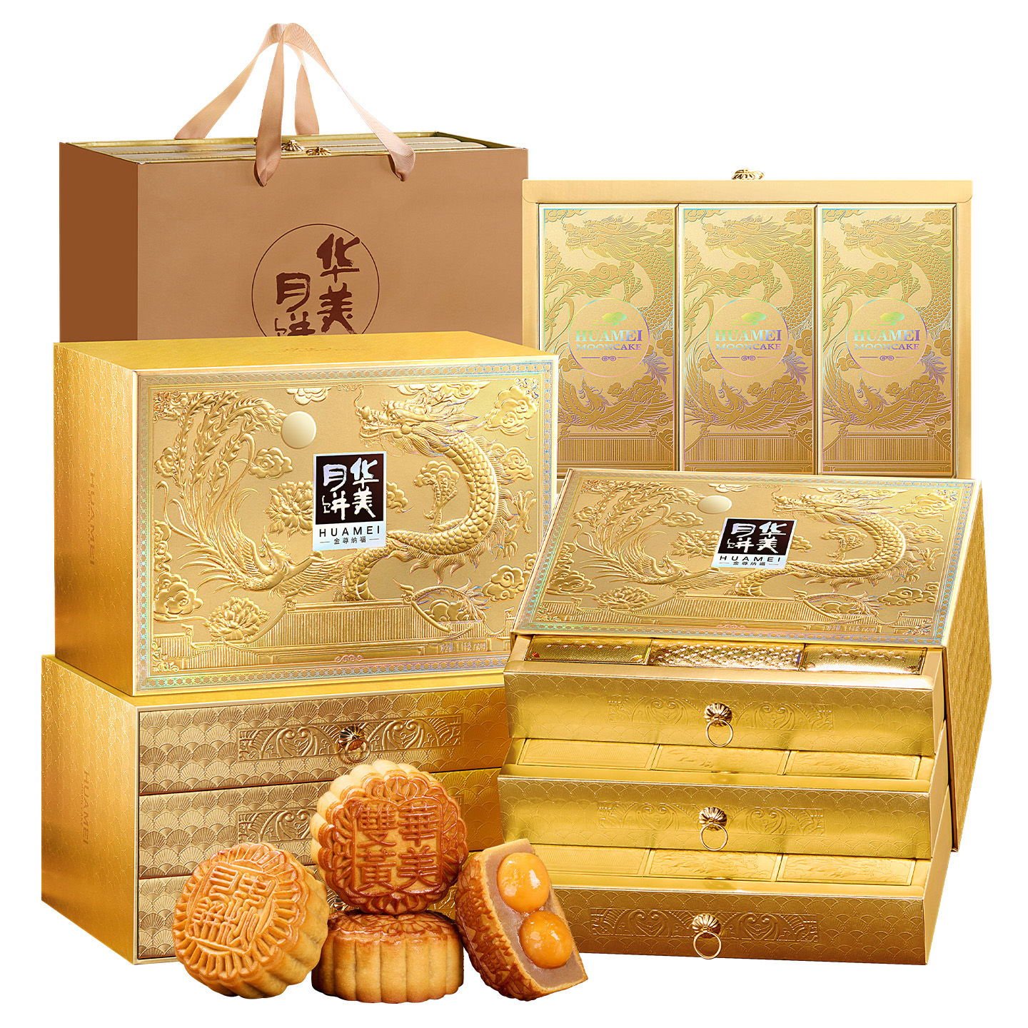 华美月饼礼盒装高端三层硬盒蛋黄莲蓉月饼中秋节送礼品团购福利1675g