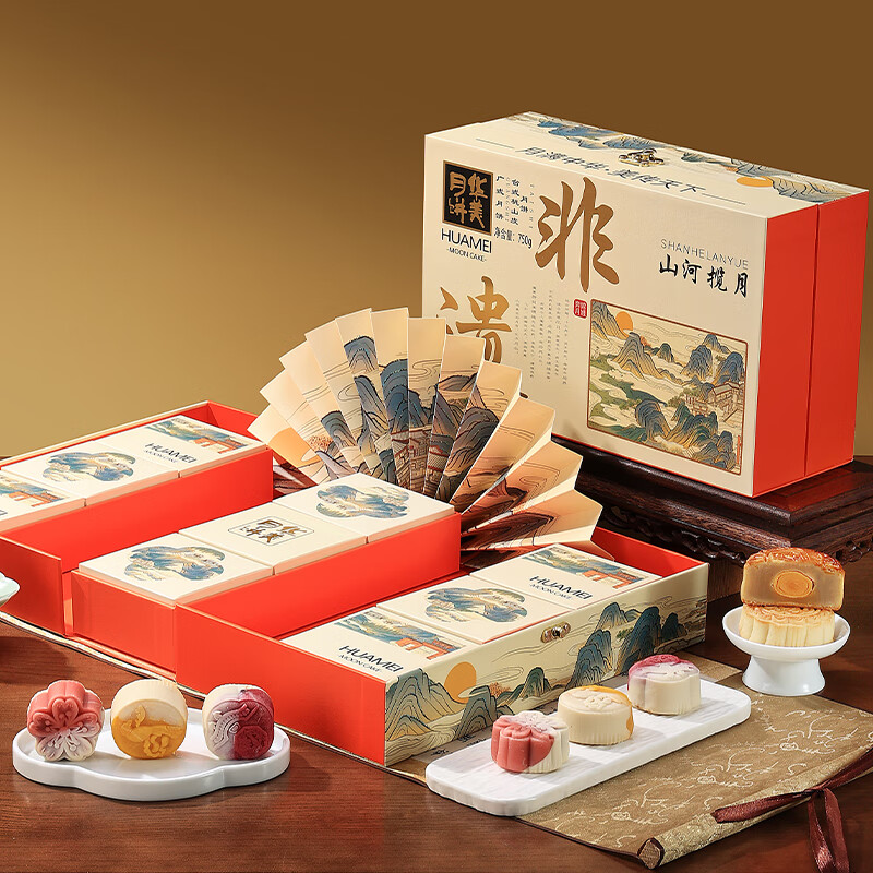 华美月饼礼盒装高端手提硬盒流心奶黄月饼中秋节送礼品团购福利900g