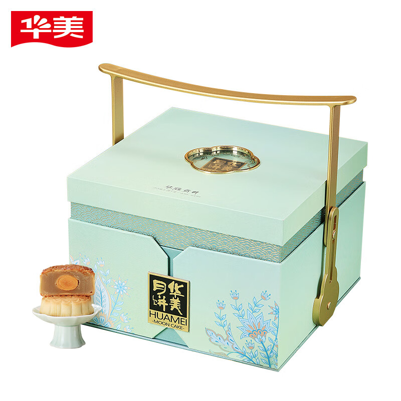 华美月饼礼盒装高端手提硬盒蛋黄莲蓉月饼中秋节送礼品团购福利900g