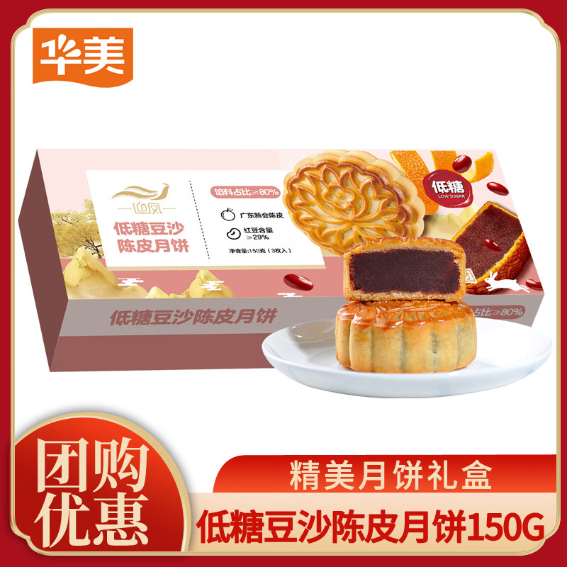 华美广式月饼 中秋节低糖蛋黄纯白莲蓉月饼员工福利送礼佳品 低糖豆沙陈皮月饼150g
