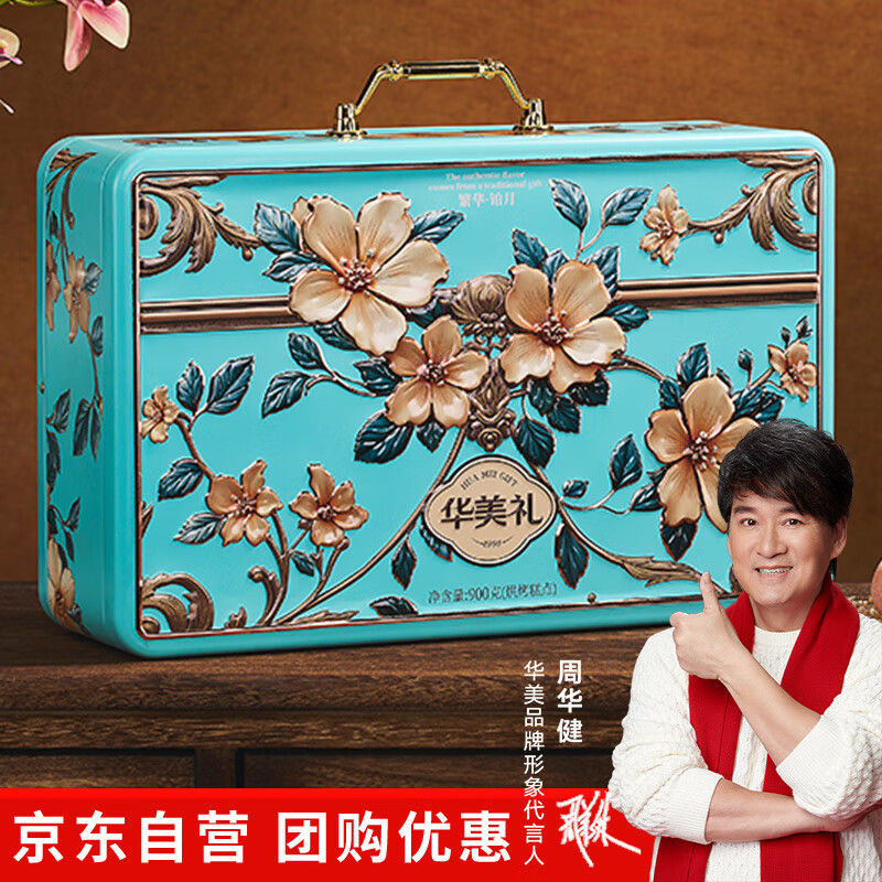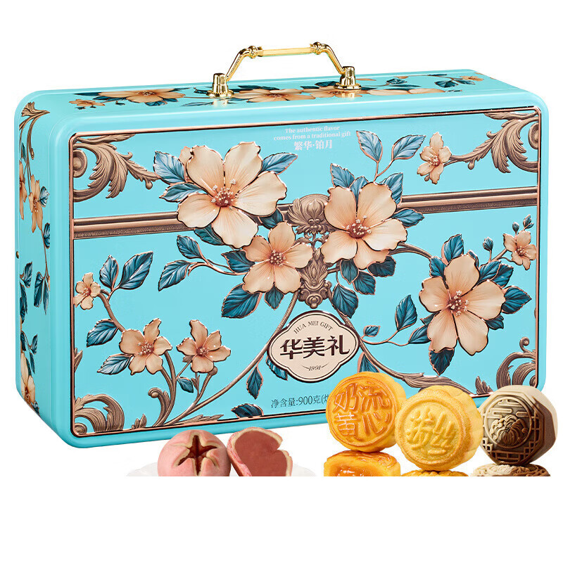 华美糕点礼盒特产中式点心流心月饼中秋节送礼团购繁花铂月900g 【16饼8味_900g】繁花铂月【精美礼盒】