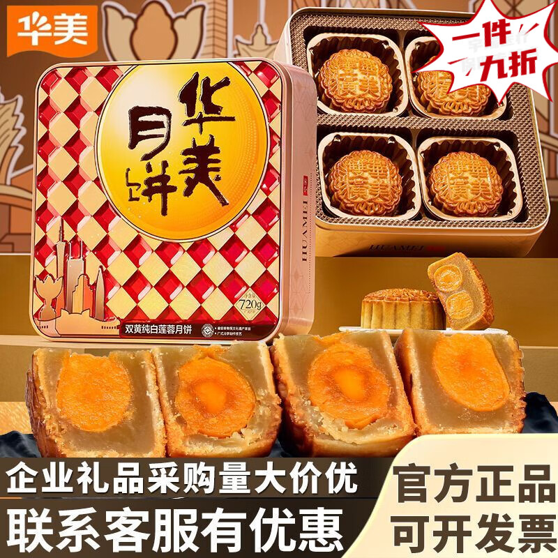 华美月饼礼盒装广式双黄纯白莲蓉月饼企业团购礼品 多盒团购更 丨联系客服 蛋黄酥540·g【橙款礼盒】带手提