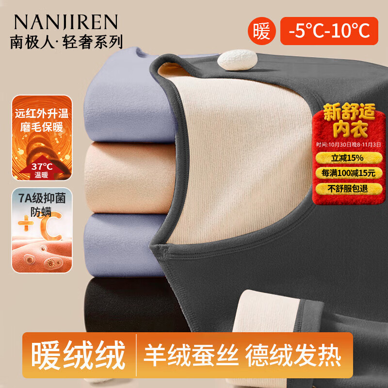 南极人德绒含蚕丝男士保暖内衣秋冬加绒秋衣秋裤轻暖线衣套装L