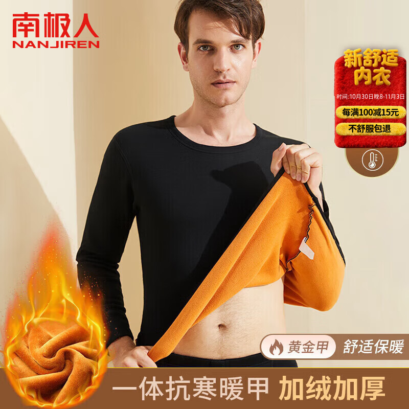 南极人男士保暖内衣加绒加厚套装秋衣秋裤男双层保暖衣裤黑色L
