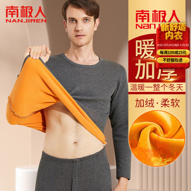 南极人男士保暖内衣加绒加厚套装青年中老年秋衣秋裤男保暖衣裤深灰4XL
