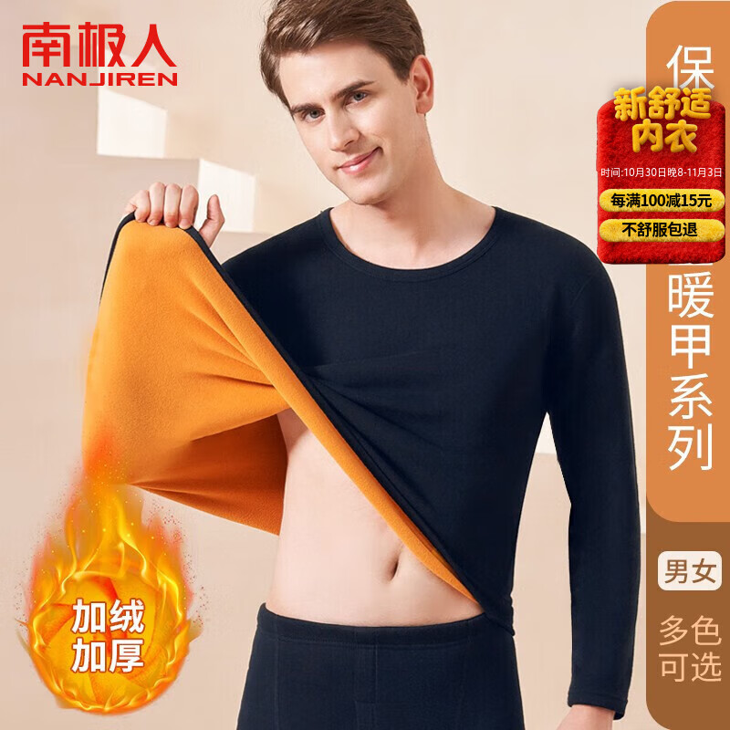 南极人(Nanjiren)男士保暖内衣男秋冬加绒加厚一体防寒双层黄金暖甲秋衣秋裤套装女 男款-藏青 【上衣+裤子】 XL