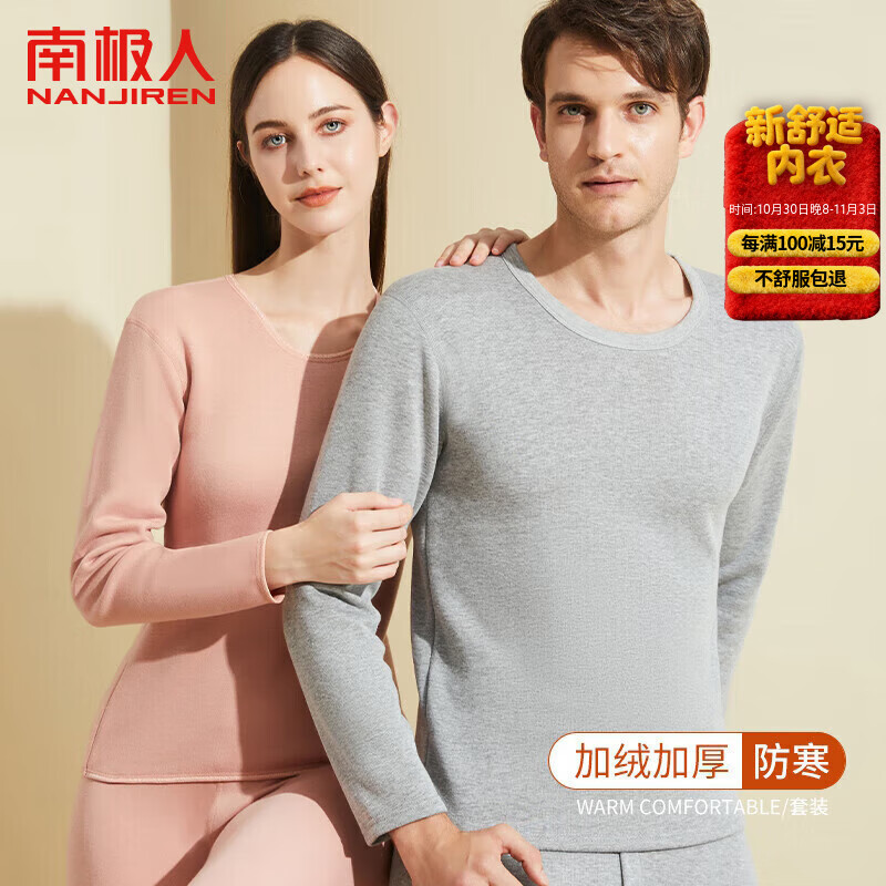 南极人 保暖内衣男士秋衣秋裤加厚加绒暖甲青年中老年保暖衣套装浅灰3XL