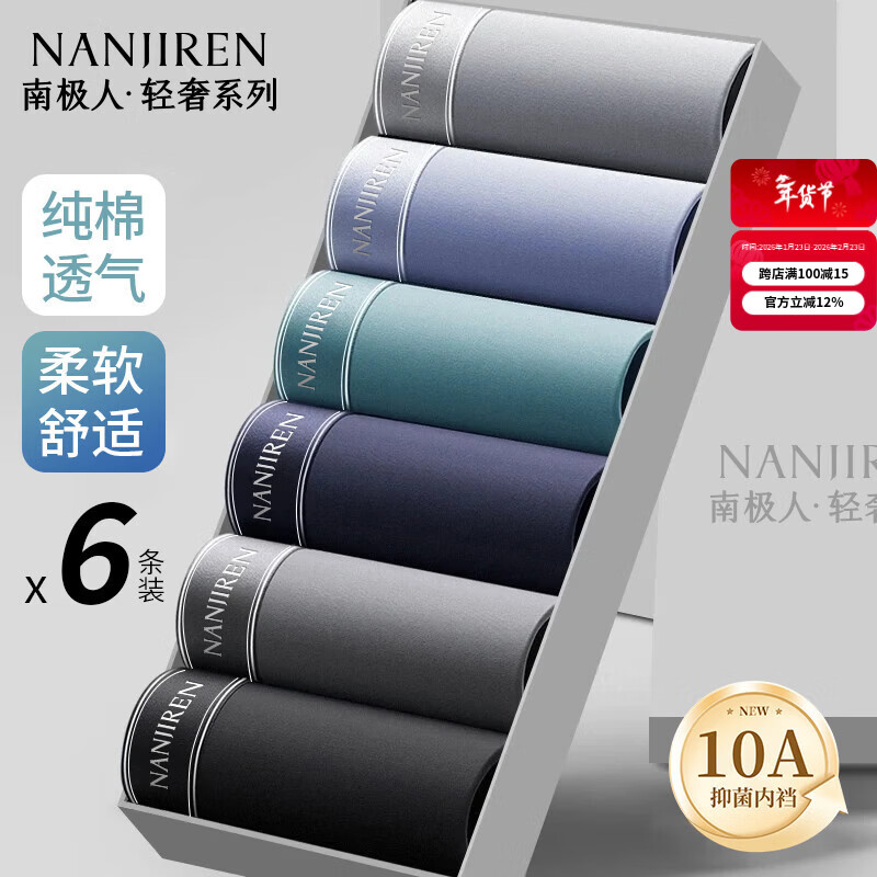 南极人10A抑菌内裤男士纯棉平角短裤头男生大码透气四角裤2025新款XL