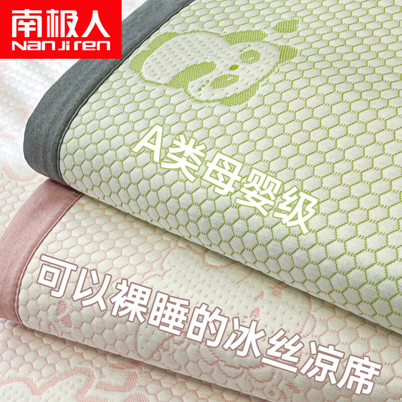 南极人冰豆豆凉席冰丝席三件套夏季床单宿舍单人空调席子可机水洗夏凉垫 冰熊-白绿【凉而不冰】 180x200cm【单凉席】