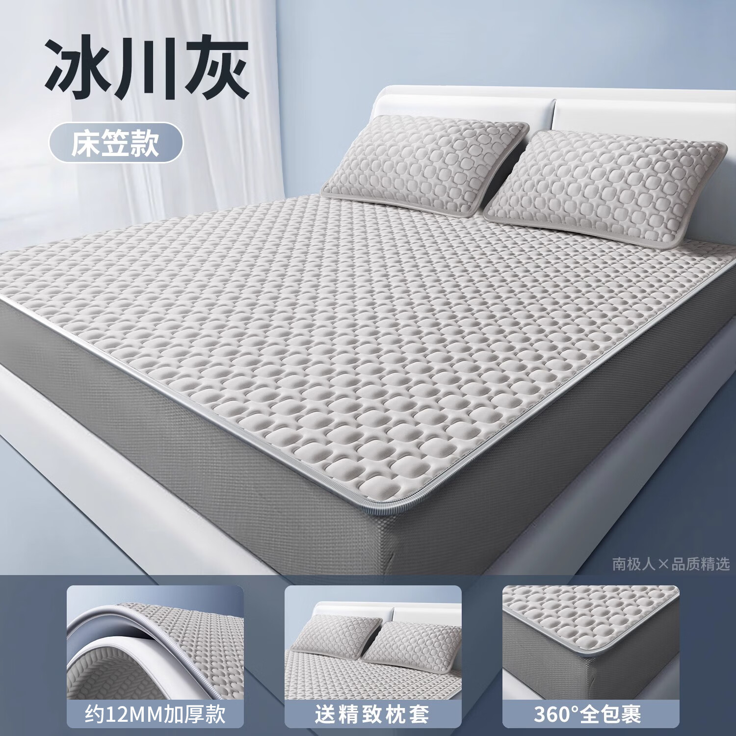 南极人A类泰国乳胶凉席床笠款三件套冰丝席可机洗折叠夏季床单空调软席 SJ冰川灰-床笠款【凉而不冰】 180x200cm乳胶凉席+枕套两只
