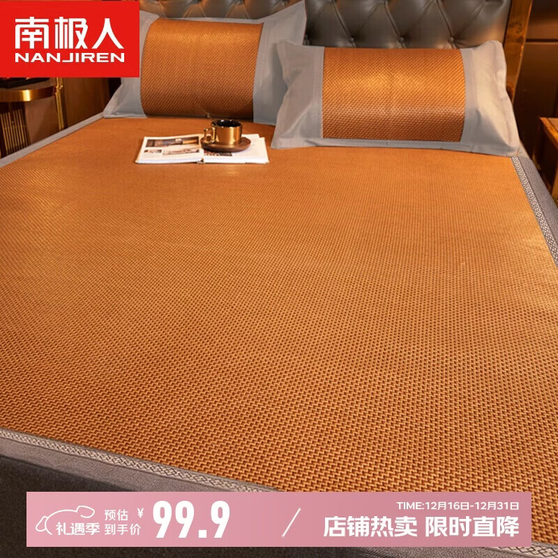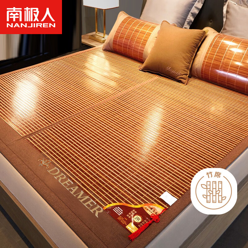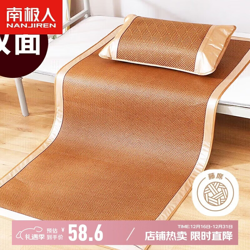 南极人凉席密藤席冰丝席学生宿舍单人1.2x1.95米空调席子两件套可折叠