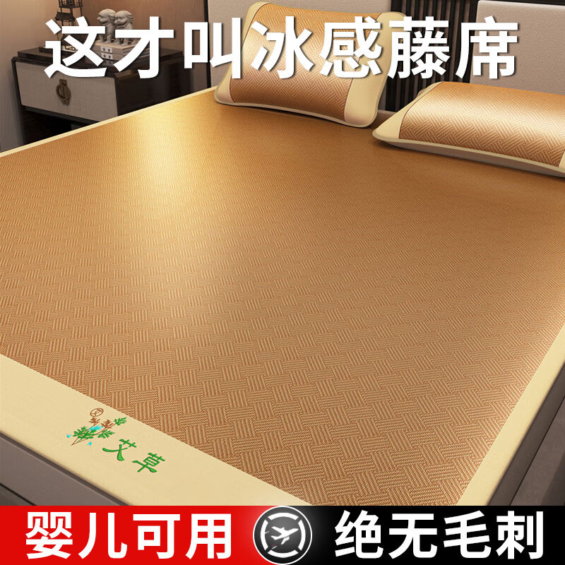 南极人夏天藤席凉席冰丝席1.8x2米夏季草席宿舍单人可水洗裸睡空调软席 艾草席-饼干花【透气不闷】 180x200cm凉席单件
