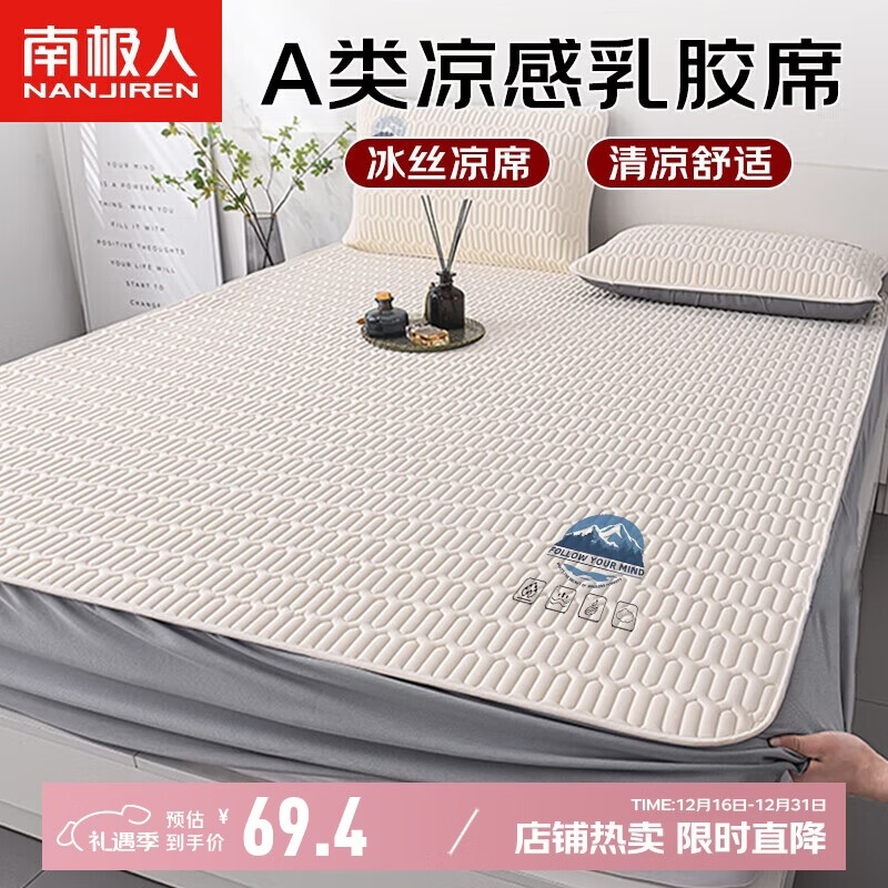 南极人A类乳胶凉席三件套床笠款 夏季凉感冰丝席空调席子1.5x2米床