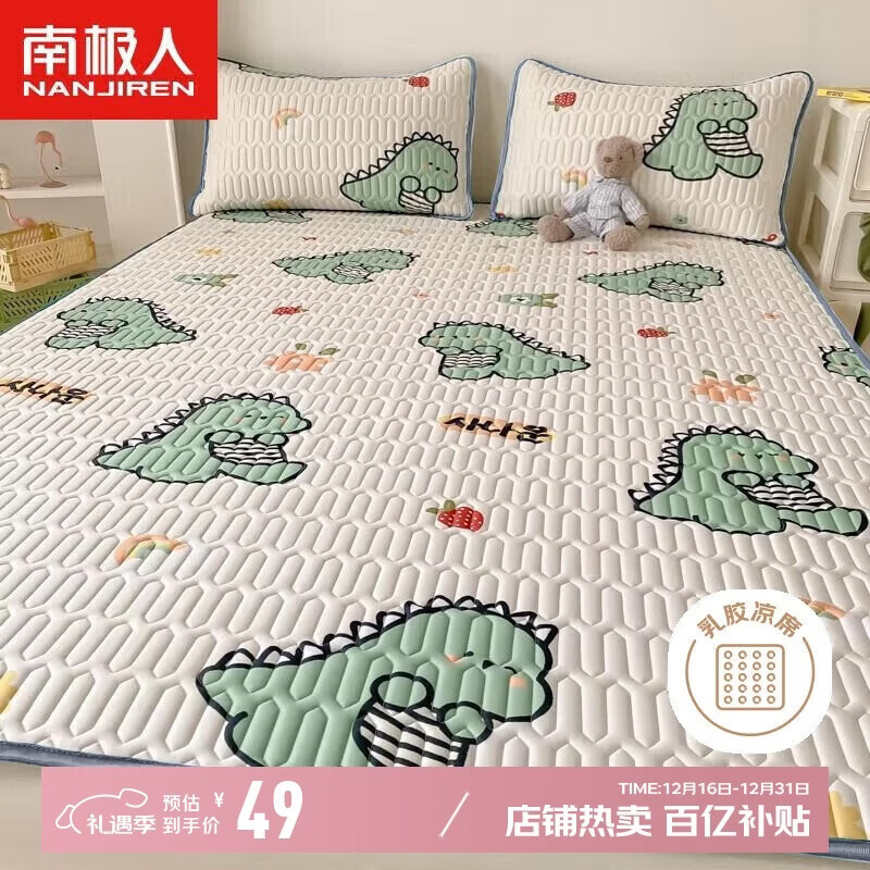 南极人乳胶席凉席 夏天凉感冰丝席子空调席三件套 1.5x2米床【可水洗】