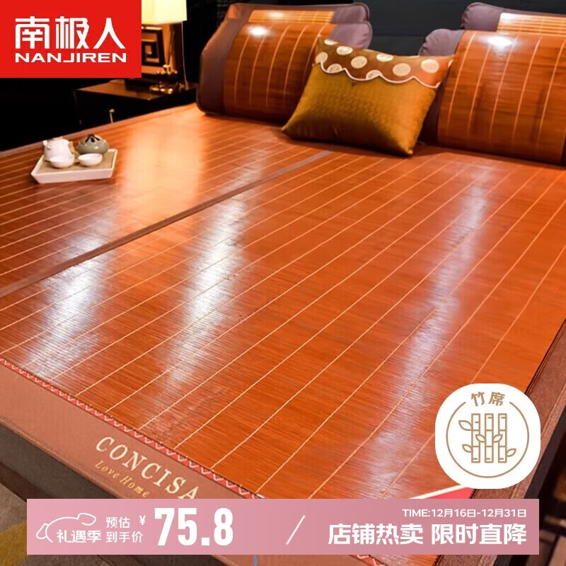 南极人(Nanjiren)碳化头层竹青 竹席凉席 双人 单席 180*195cm【双面可用】