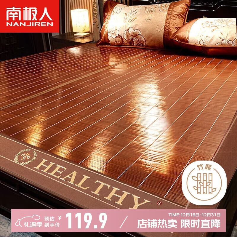 南极人碳化头层竹青 竹席凉席 双人 单席 120*195cm【双面可用】