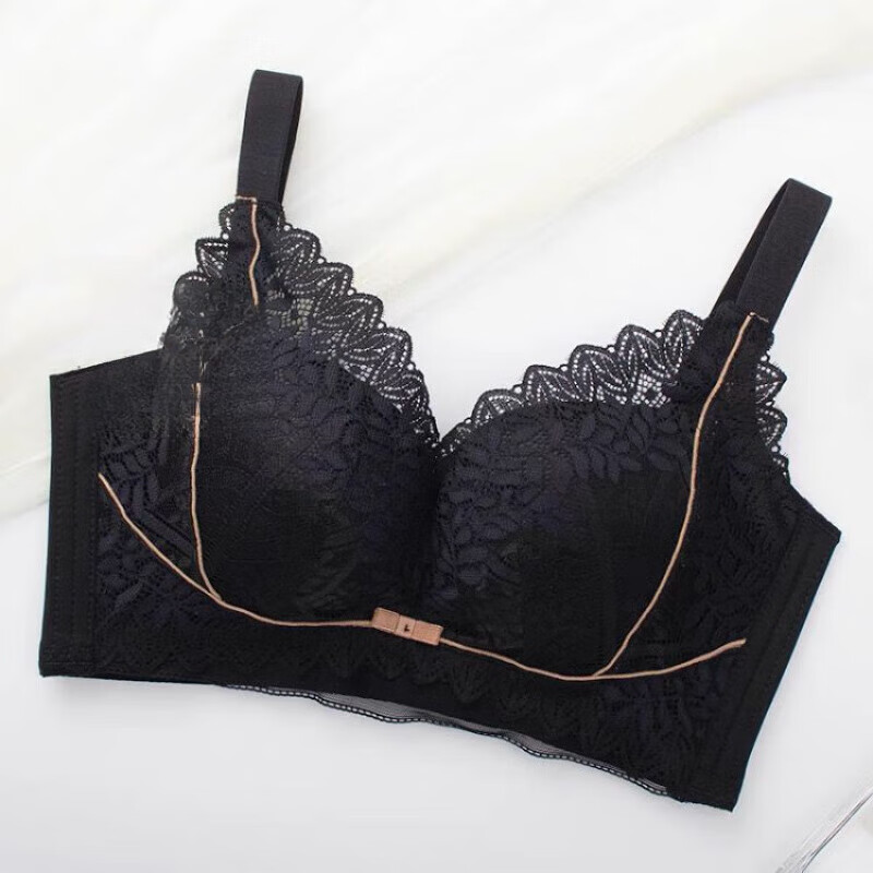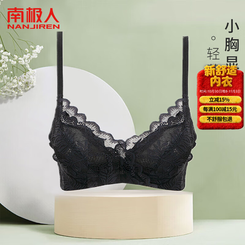 南极人内衣女士内衣薄款无钢圈蕾丝文胸聚拢调整型上托舒适性感胸罩黑色