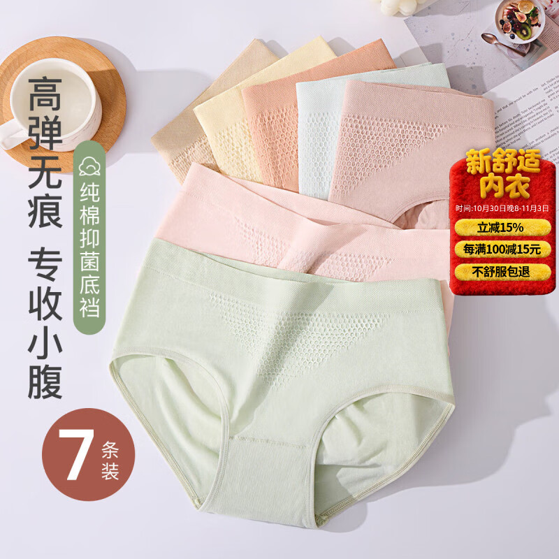南极人7条装女士内裤女纯棉100%棉裆中腰无痕舒适纯色内裤女M