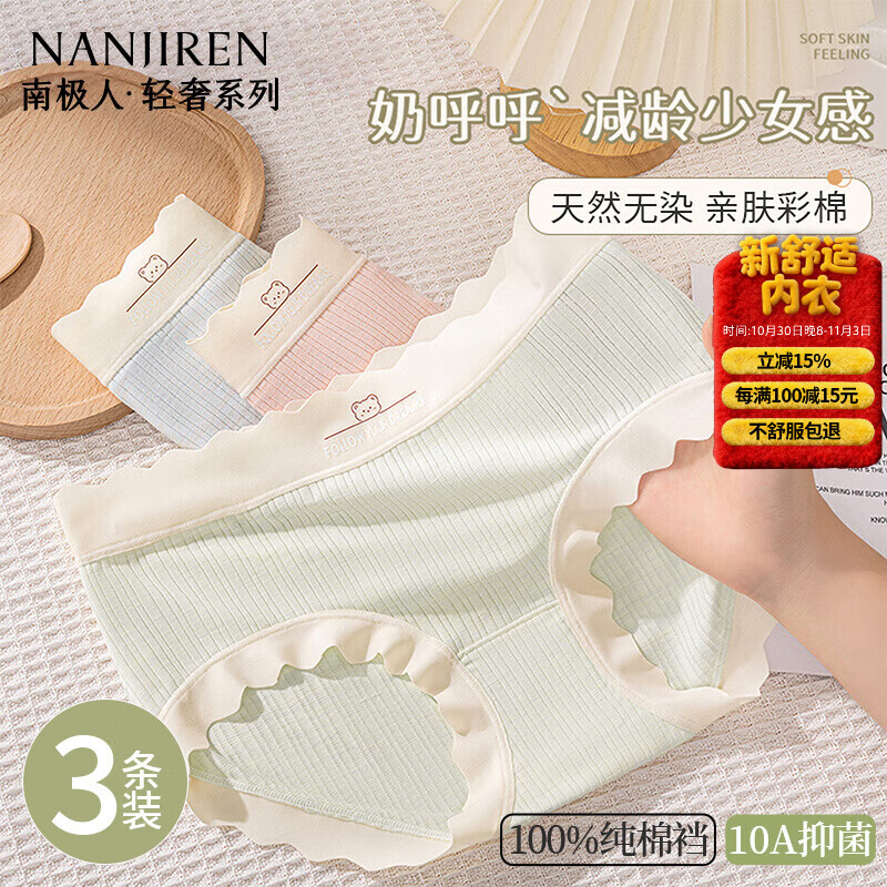 南极人女士内裤女3条纯棉抑菌裆中腰少女无痕内裤三角裤25年新品混色 XL