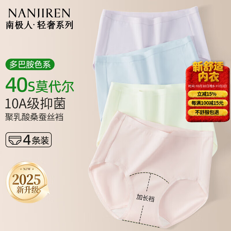 南极人女士内裤女高腰莫代尔无痕10A抗菌含聚乳酸桑蚕丝裆柔软女内裤XL