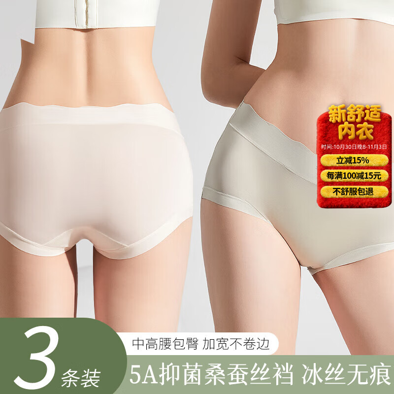 南极人(Nanjiren)无痕内裤女夏季冰丝收腹提臀舒适透气高腰女士三角裤