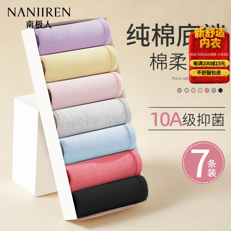 南极人7条女士内裤女纯棉100%棉10A抑菌裆中腰无痕舒适纯色内裤女