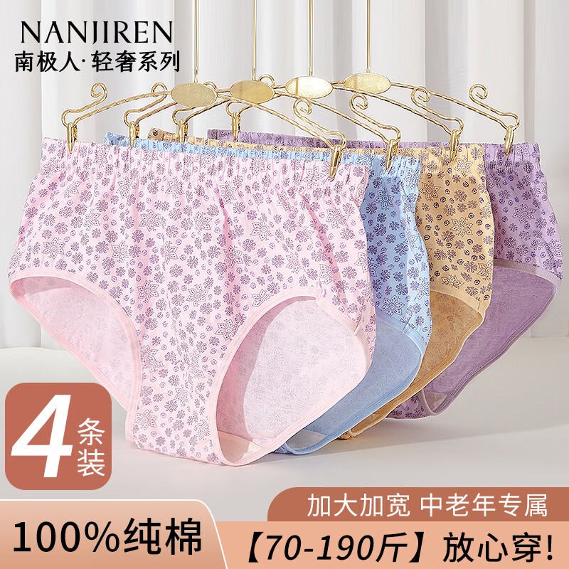 南极人中老年人内裤女纯棉抑菌裆高腰大码内裤加肥送妈妈奶奶三角裤4条