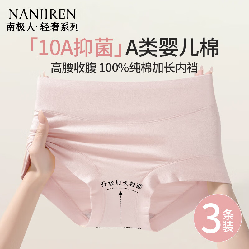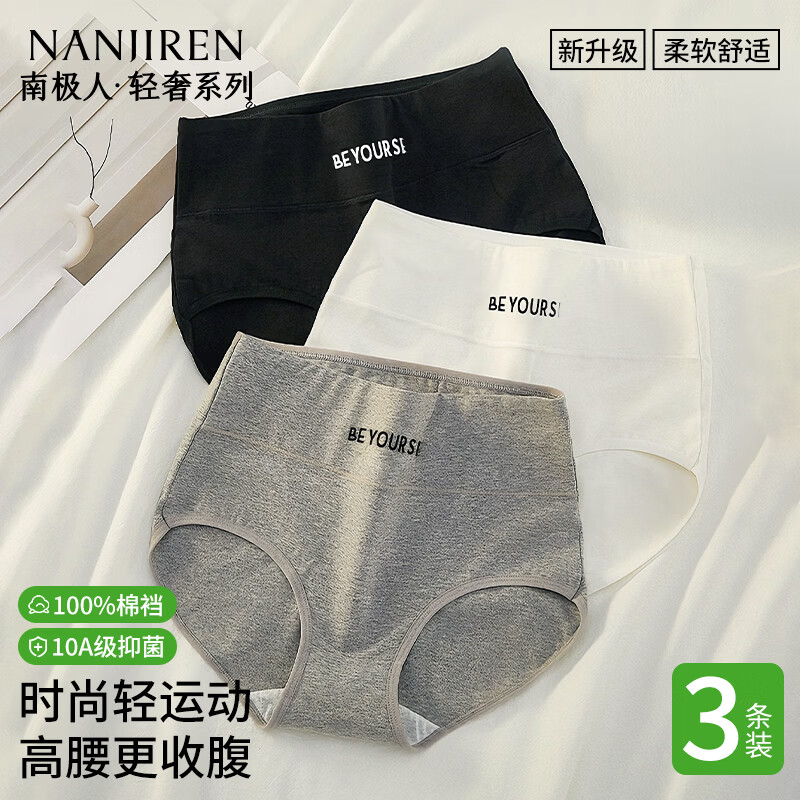 南极人【特惠清仓】医用级高腰全纯棉内裤女10A抗菌收腹女士内裤3条3条L