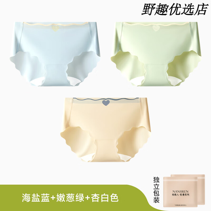 南极人(NANJIREN)冰丝内裤女士无痕薄款纯棉裆2025新款少女生性感夏季三角短裤 海盐蓝+嫩葱绿+杏白色 【A类冰丝标准 1 3条 M 适合80-100斤