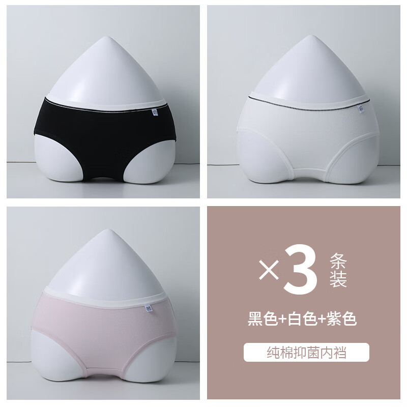 南极人南极人纯棉内裤女舒适透气柔软亲肤女生短裤简约小清新三角裤 简约风A(黑色,白色,紫色 3条 M