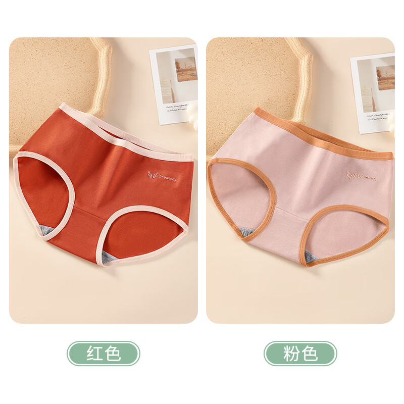 南极人内裤女士全棉无痕舒适少女生中腰三角短裤2025新款 红色+粉色_【装】 2条 M _适合80-100斤