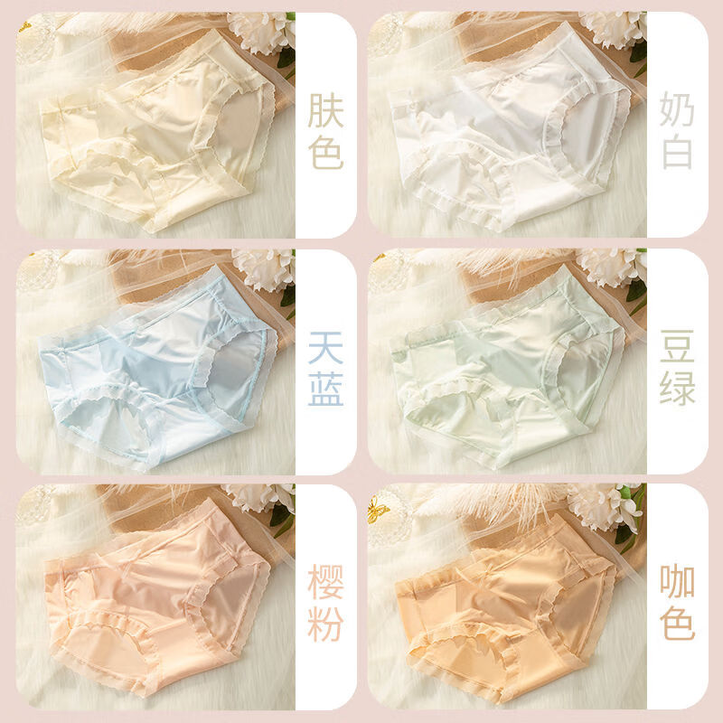 南极人冰丝内裤女士夏季薄款无痕少女生纯棉裆中腰短裤衩性感 ++天蓝+豆绿+樱粉+咖色6条 M