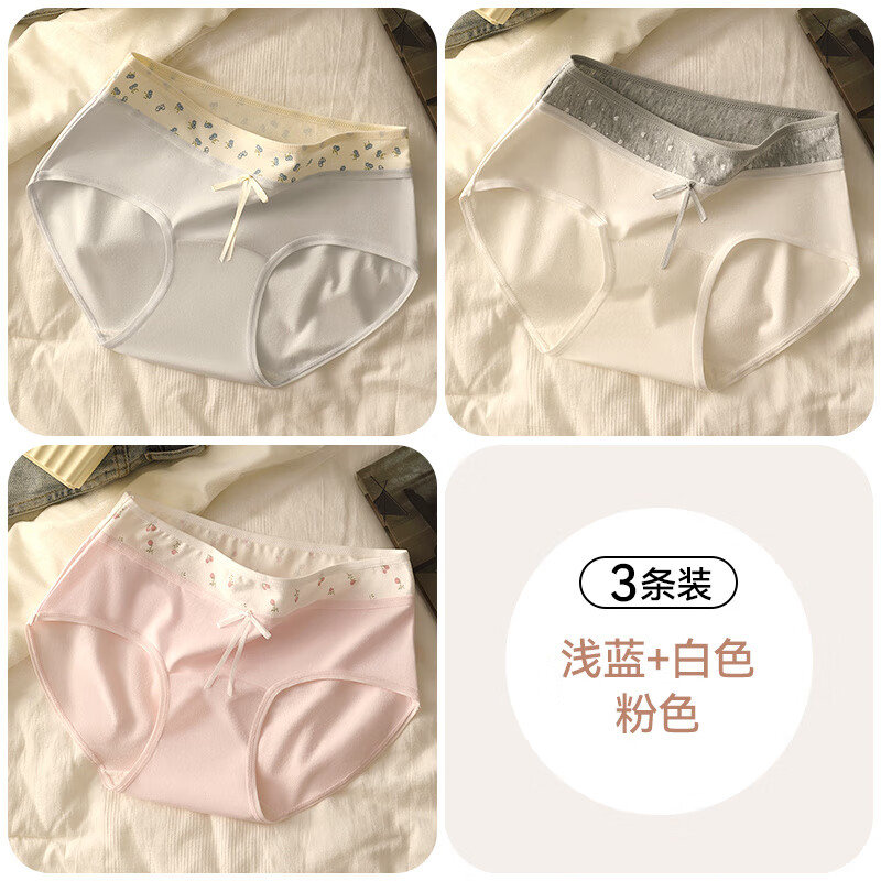 南极人内裤女生全棉透气无痕中腰甜美少女大码三角短裤头 浅蓝+白色+粉色 3条 M